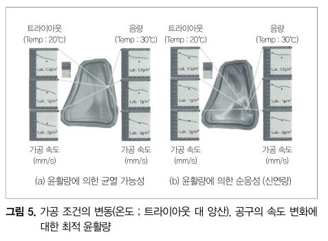 윤활량을 늘리면 균열의 회피책이 되는 것을 명확하게 알 수 있다. 윤활량 증가에 의해 경계 윤활 내의 가공 속도 증가에 의한 마찰 저감을 볼 수 있다. 이 경향이 균열의 개선과 순응성 악화에 동일하게 나타나고 있다. 이 감도 해석에서는 균열과 순응성을 양립시키는 윤활량을 찾을 수 있다.