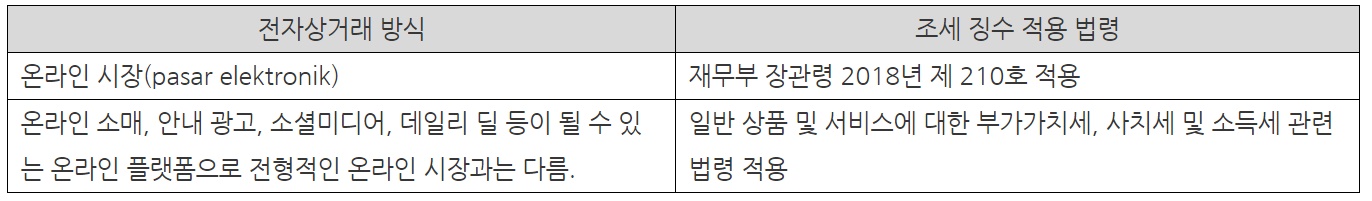 표 3. 전자상거래 방식에 따른 조세 징수 적용 법령