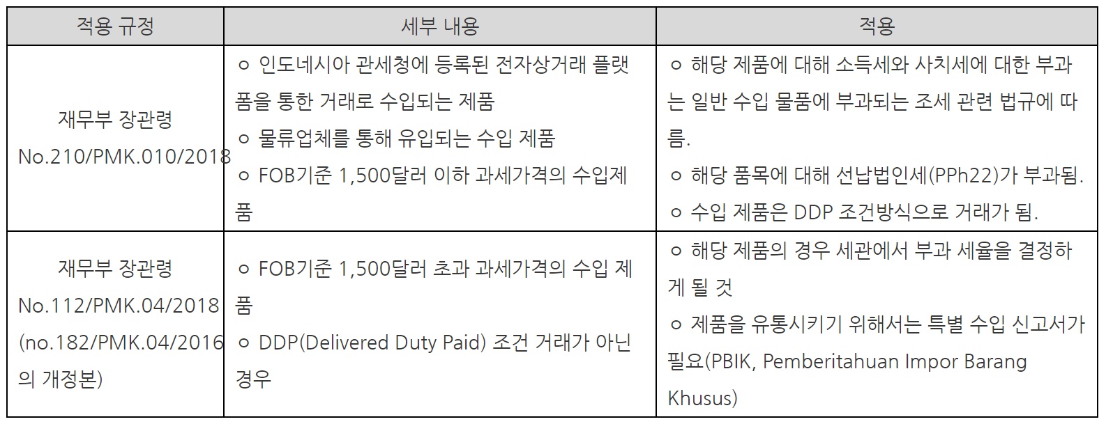 자료원: 인도네시아 재무부 장관령 2018년 제 210호, 2018년 제 112호