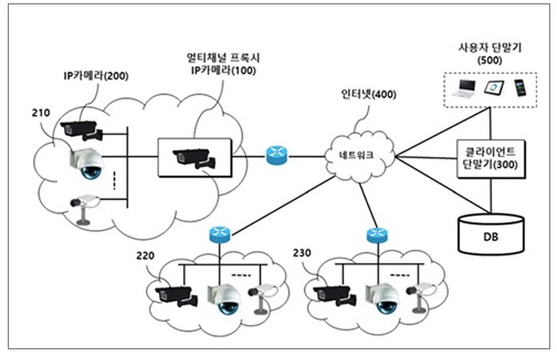 이 기술은 인접한 망의 대표카메라를 멀티채널 프록시 카메라로 동작하게 하고, 인접한 IP카메라는 해당 멀티채널 프록시 카메라를 경유하여 전송하는 것으로서, 인접한 카메라는 유선 혹은 무선으로 연결이 가능하다.