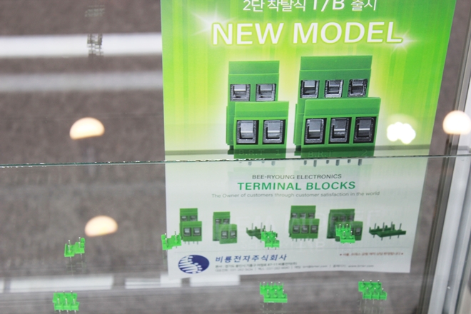 특히 비룡전자는 이번 전시회에서 새롭게 개발한 2단 착탈식 터미널 블록을 선보였다. 기존 제품은 PCV에 삽입돼있는 구조였기에 수리하는데 어려움이 있었다. 이 터미널 블록은 현장의 요청을 반영한 결과물로서 수리 시 납땜을 뜯지 않고 프레임만 착탈해 바로 꽂을 수 있도록 용이하게 만들어졌다.