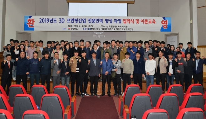 지난 8일, 창원대학교 국제회의관에서 입학식이 개최됐으며, 이날 90여명의 교육생과 함께 이용주 경남 신산업연구과장, 이재현 3D프린팅산업 전문인력 양성사업단장 등이 참석했다.