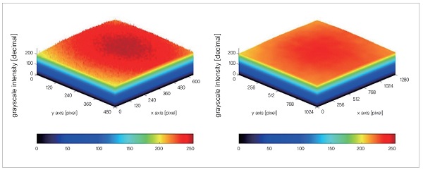 ▲ B&R의 기계 비전 카메라에 내장된 LED는 전체 표면(왼쪽)에 걸쳐 균일한 조명을 제공한다. 다른 통합형