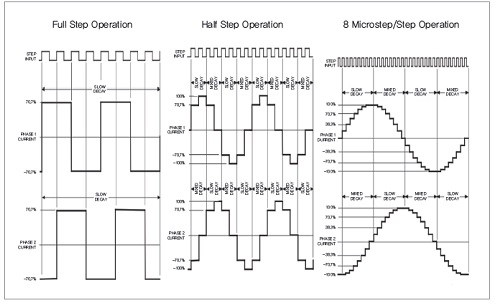 일반적인 모터의 스텝각에서 좀 더 세밀하게 나누어 한 모터의 동작을 정밀제어 가능하게 해주며 기본 스텝 각도인 Full-Step에서 최대 256분의 1 스텝각을 지원한다.