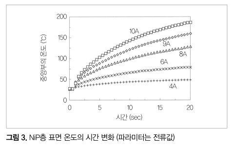 이에 필자 등은 금형 표면에 설치된 박막 발열체만을 통전 가열하는 방법에 주목하고 있다. 해당 방법은 금형 베이스 상에 단열층으로서 지르코니아 세라믹스(이하 ZrO2)를 설치, 그 위에 니켈인(이하 NiP) 박막(~10µm 정도)을 도금한다. 이 NiP 박막을 통전 가열함으로써 금형 표면만이 효율적으로 고속으로 가열된다.