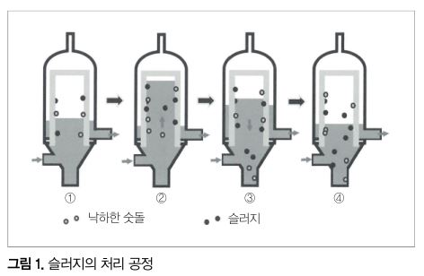 슬러지 처리를 4공정으로 나눠서 설명한다(그림 1).