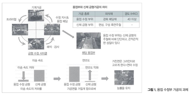 난성형 부품의 프레스 금형 제작에서는 요구되는 패널 품질을 만족시키기 위해 여러 번에 이르는 패딩 용접 후의 수정가공이 발생한다.