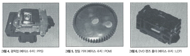 이와 같은 상황 하에 자동차․자동차 부품, 정보기기 메이커 등 여러 업계에서 수지화를 적극적으로 추진하고 있다. 여기서는 자동차 부품, 광학기기, 정보기기, 치공구의 적용 사례에 대해 소개한다.