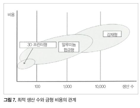 최근에는 3D프린터에서 양산 시에 사용하는 재료와 거의 동일한 물성을 갖는 부품의 극소량 생산이 가능하다. 그러나 판매촉진용 샘플, 성능평가용 엔지니어링 샘플 혹은 최종 부품으로서 100개 정도의 생산 수가 필요한 때, 3D프린터를 사용하던가 수지제의 캐비티, 코어의 금형을 사용하던가, Q(품질)․C(코스트)․D(리드타임)을 검토할 필요가 있다.