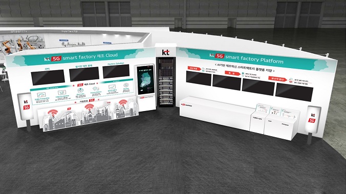 KT는 AI기반 팩토리 기술을 적용해 공장의 지능화, 고도화를 돕는 ‘5G 스마트팩토리 플랫폼’도 함께 소개했다. KT는 전시장에 미니 제조공정을 설치해 5G로 연결된 협동로봇과 머신비전의 데이터가 관제 플랫폼인 팩토리 메이커스(Factory Makers)로 실시간 전송되어 원격 모니터링 및 분석되는 모습을 시연했다.