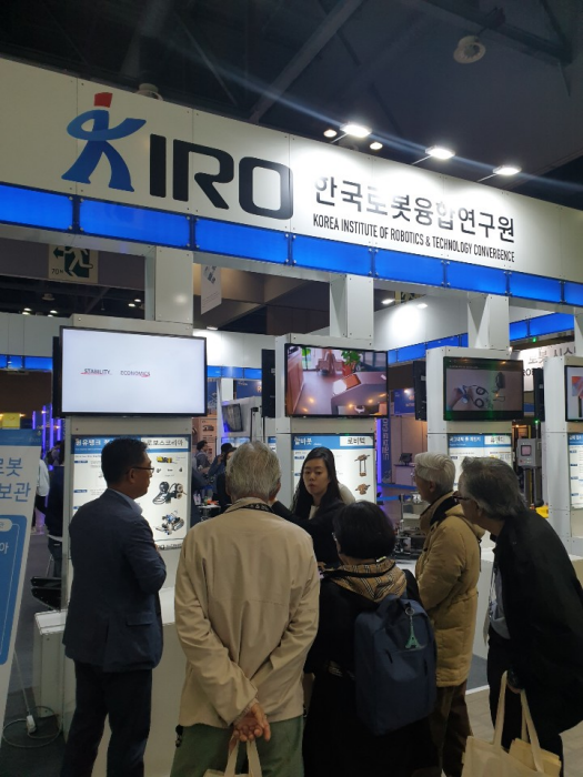 한국로봇융합연구원(KIRO)가 2019 로보월드에서 올해 핵심연구 분야별로 다양한 로봇들을 전시했다.