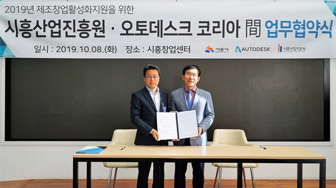 ▲(좌측부터) 오토데스크코리아 정종호 제조 사업 부문 상무, 시흥산업진흥원 정동선 원장