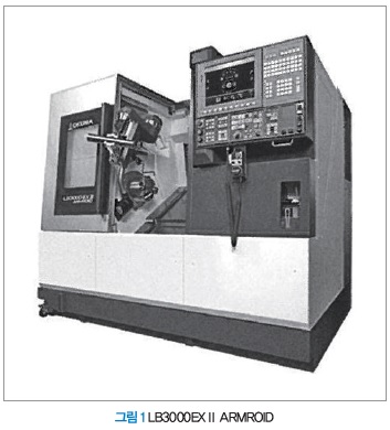 그림 1은 오쿠마의 주력 CNC 선반인 ‘LB3000EXⅡ’와 완전 융합을 도모한 로봇 시스템 ‘ARMROID’이다. 상세한 것은 이하에 설명한다.