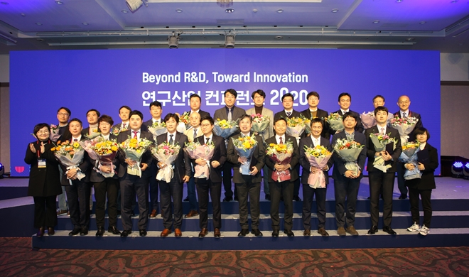 ▲연구산업 컨퍼런스 2020에서 유공자 표창을 받은 수상자들