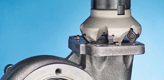 ▲난삭 스테인레스강 밀링 가공용 인써트 ‘PC9540’가 장착된 모습 <사진 : 코오로이 홈페이지>