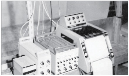 동시에 진동 이송의 구동회로를 켠다. 그러면 회로 기판 상의 총 40개의 리드 릴레이가 맥동과 같은 리드미컬한 소리를 내기 시작한다. 실험 시작 후 곧바로 고장이 나 버릴지도 모르기 때문에 만약을 위해 준비한 촬영기도 스타트.