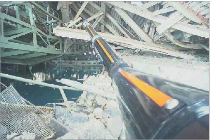 사진 12. 뱀 모양 다관절 암이 1호기의 잔해 속을 탐색하고 있는 모습