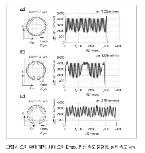 ① 회전축과 직진축의 윤곽운동에서 속도와 정도의 관계를 평가할 수 있다.