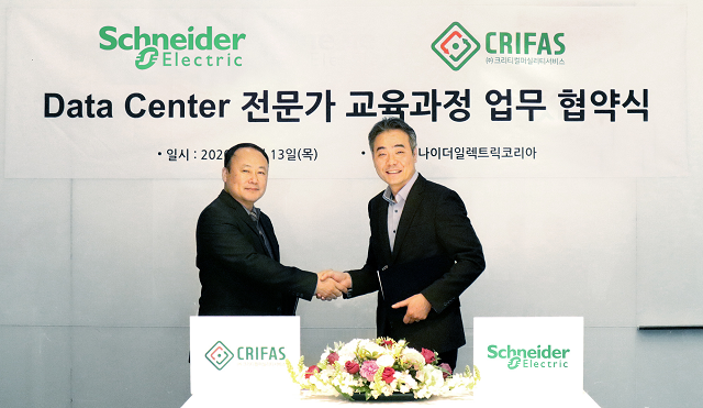 ▲ 슈나이더일렉트릭이 크리티컬퍼실리티서비스와 SE아카데미 데이터센터 전문가 과정 업무협약을 체결했다. (사진 : 슈나이더일렉트릭)