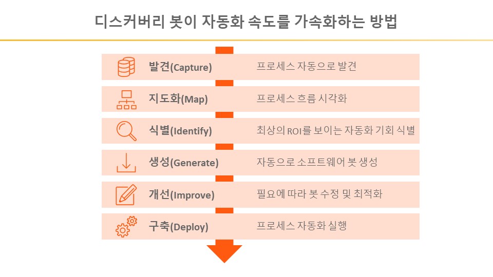 디스커버리 봇은 자동화 이전 단계에서 사용자의 업무 패턴을 스스로 파악해 한 번의 클릭으로 맞춤 소프트웨어 봇을 생성한다.