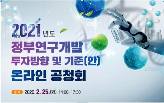 과학기술정보통신부(이하 ‘과기정통부’)는 2월 25일(화) 오후 2시부터 2021년도 정부연구개발 투자방향 및 기준(안) 마련을 위한 온라인 공청회를 개최한다. 이번 공청회는 최근 코로나-19 확산에 따른 국민들의 우려를 고려해 오프라인 행사를 개최하는 대신 온라인 방식의 공청회를 하기로 결정됐다.