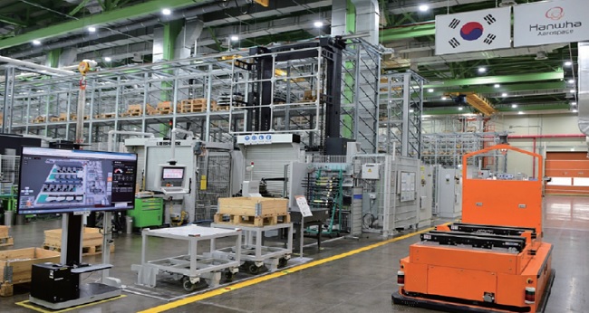 한화에어로스페이스 신공장은 공장자동화 수준을 넘어 생산 과정에 ICT 기술을 접목하여 생산성과 품질을 향상시키고, 고객의 갑작스러운 요구에도 능동적으로 대응하는 차세대 공장 구현을 목표로 단계별로 스마트 팩토리 구현을 진행하고 있다.