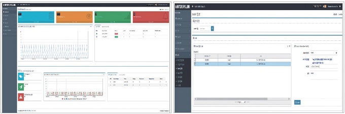 ▲ FACTORY CUBE-데이터 가공을 위한 연산 기능 화면(왼쪽)과 FACTORY CUBE-3D 모니터링 화면