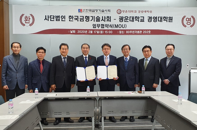 한국금형기술사회(이하 기술사회)와 광운대학교 경영대학원은 지난 17일(월) 오후 3시 광운대학교 개교 80주년 기념관 2층에서 국가산업발전에 필요한 인재양성과 산업사회의 새로운 신기술 및 교육 프로그램 개발에 관련된 정보교환 등을 위해 양해각서를 체결했다.