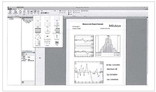 MeasurLink는 여러 가지 통계 그래프를 이용한 임의의 리포트 템플레이트를 작성할 수 있다(그림 10). 게다가 스케줄 설정한 리포트는 표시, 인쇄 및 E 메일에 첨부해 자동 송신할 수 있다.