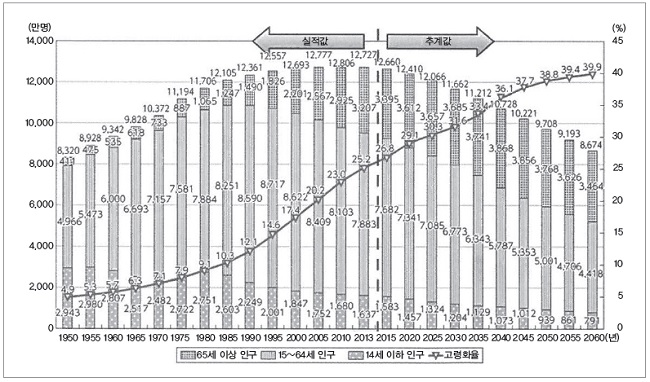 표 1. 고령화의 추이와 미래 추계 (총무성 HP에서)