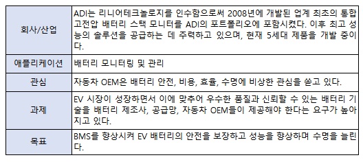 “BMS는 지속적으로 셀을 모니터링하면서 시간, 온도, 동작 조건에서 신뢰할 수 있는 측정 정확도를 제공한다. BMS는 매순간 무슨 일이 일어나는지 알며, ADI 칩으로부터 수신하는 정보에 100% 의존한다”