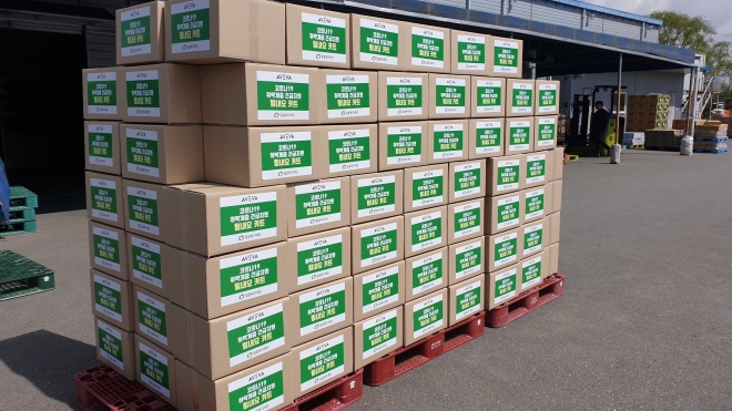 임직원들이 자발적으로 모은 성금과 함께 전달된 ‘코로나19 취약계층 긴급지원 힘내요 키트’ 는 마스크와 손 소독제 등 방역위생용품과 면역력 증진을 위한 건강식품, 즉석 요리용 식자재 및 생필품으로 구성돼 있다.