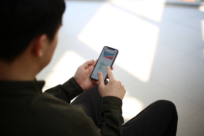 ▲ 사용자가 스마트폰에서 비주얼캠프의 시선 분석을 체험해보고 있다.