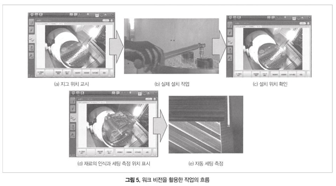 이어서 측정 프로브를 이용한 평행도 조정과 워크 원점의 설정을 하기 위한 안전한 프로그램을 제어장치가 자동 생성해 실행한다(그림 5).