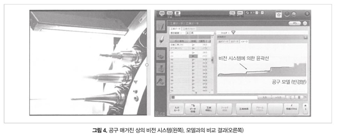 공구 매거진 내에 설치한 비전 시스템에 의해 다음 가공에 사용할 공구군을 프로그램에서 추출, 연속적으로 촬상한다. 이들 공구군이 콜리전 세이프 가드에 의해 미리 설정된 공구 형상과 일치하는지 자동 판정, 다른 경우에는 경고를 표시할 수 있다(그림 4).