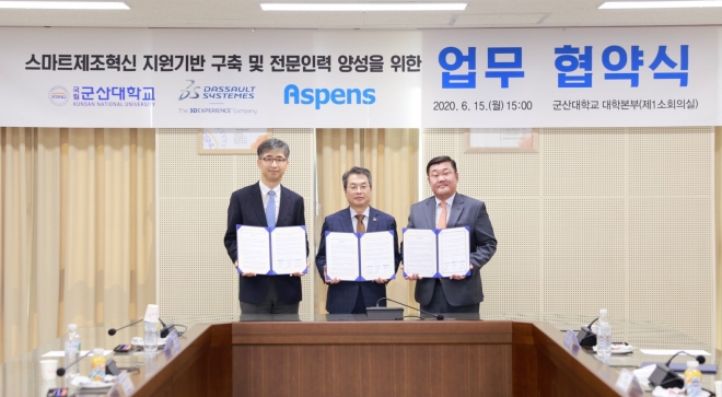 다쏘시스템은 군산대학교와 스마트제조혁신을 위한 인재양성에 나선다고 발표했다. 다쏘시스템은 6월 15일 군산대학교 대학본부에서 스마트제조혁신 전문인력 양성을 위한 양해각서를 체결했다.