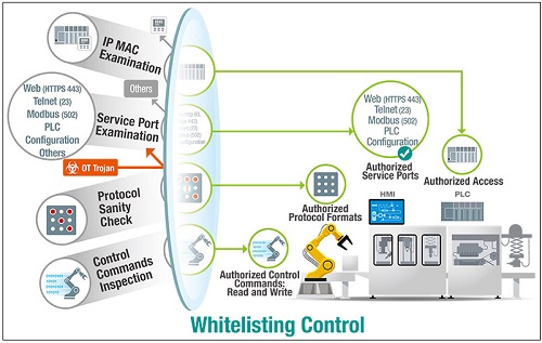 그림 5와 같이 화이트리스팅 제어를 사용하면 OT 트로이 목마의 DoS 공격 가능성을 크게 줄일 수 있다.