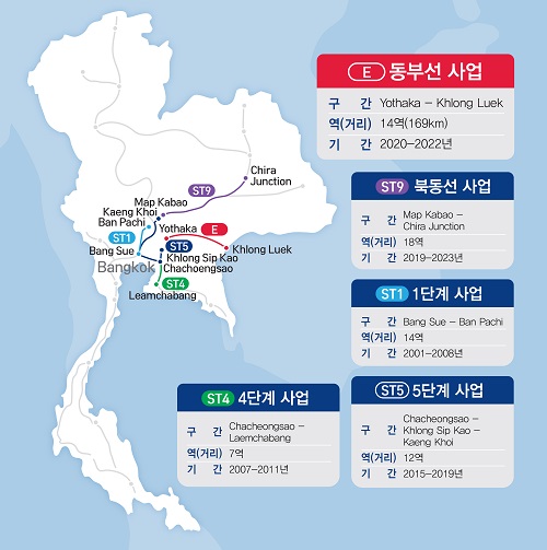 이 사업은 태국 철도 인프라 개발 사업으로 지역개발 및 화물, 여객 운송 능력 확대를 위해 ‘요타카(Yothaka)-클롱룩(Khlong leuk)’ 구간 총 연장 169km, 14개역사의 노후 신호시스템을 전면 교체하는 프로젝트다.
