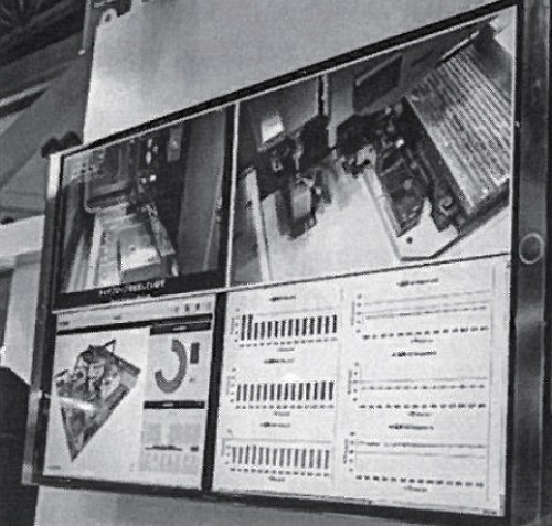 또한, 센서 기술을 연삭반의 적소에 배치, 그 얻어진 데이터를 연삭 정보·기계 상태·기계 자동 보정·예방 보전으로 이어지는 기계 정보로 변환하는 ‘가시화’(그림 4)의 개발을 추진하고 있으며, 그 일부로서 숫돌 축머리, 숫돌 좌우·전후 축의 진동 데이터, 온도 데이터를 모니터에 1분 간격으로 갱신 표시하고, 또한 외부의 Web 화면과 연계하는 기능을 가지고 있는 가동 관리 소프트웨어에 Web 감시 카메라의 영상을 링크시켜 멀리서도 실시간의 연삭반 가동 상황을 확인·보고할 수 있는 영상을 모니터에 표시했다.
