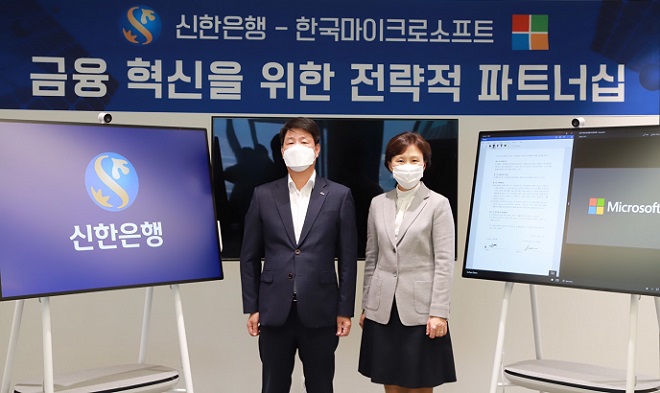 한국마이크로소프트와 신한은행이 디지털 미래 금융 연구와 서비스 혁신을 위한 전략적 파트너십을 맺고 금융 혁신에 박차를 가한다.
