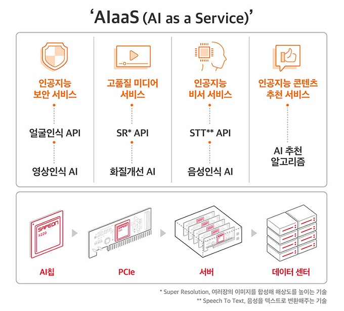 SKT는 AI 반도체 칩 기반 하드웨어부터 AI 알고리즘, API 등 소프트웨어까지 AI 서비스 제공에 필요한 통합 솔루션을 제공하는 'AIaaS(AI as a Service)' 전략을 통해 글로벌 시장 공략에 나설 계획이다.