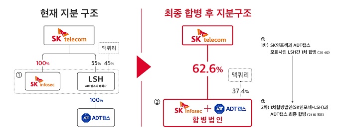 SK인포섹과 LSH가 연내 합병을 하고 내년 1분기 안에 기업결합 신고 등 절차를 거쳐 ADT캡스까지 합병을 완료, 보안전문기업을 출범시킬 계획이다.