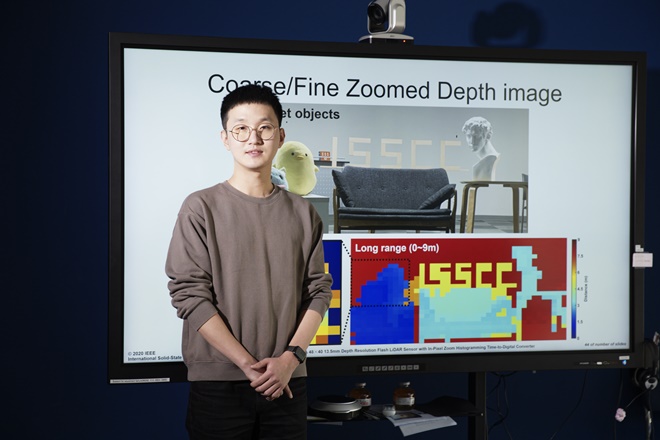 김범준 대학원생이 제1저자를 맡은 연구는 ‘3차원 라이다 이미지 센서’를 개선하는 방안에 대한 것이다. 특정 공간의 거리 정보를 획득하는 센서에는 다양한 방식이 있는데, 이중 ‘라이다(LiDAR) 센서’는 빛의 반사속도를 이용해 이미지 안의 거리를 측정한다.