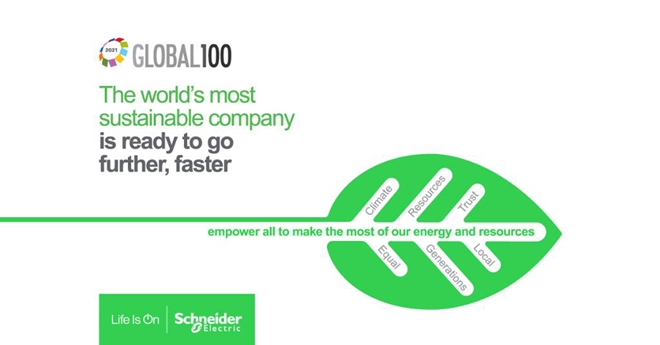 슈나이더 일렉트릭은 ESG에 대한 헌신을 인정받아 코퍼레이트 나이츠의 2021 글로벌 지속가능경영 100대 기업(Global 100 Most Sustainable Corporations)에서 전년대비 28계단 상승한 세계 1위로 올라섰다.