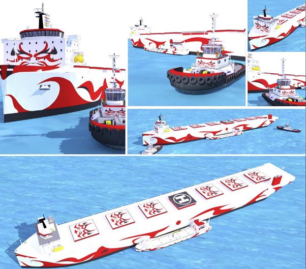 e5랩은 도쿄만 내를 항행하는 전기탱커를 기획, 디자인하며 추진시스템은 대용량의 리튬이온 배터리와 추진제어장치 등으로 구성된 가와사키 중공업의 시스템을 도입한다. 이는 100% 전기의 힘만으로 운행되는 세계 최초의 전기선박이 될 전망으로, 2022년 3월에 제1선을 준공, 2023년 3월에 제2선을 준공할 예정이다.