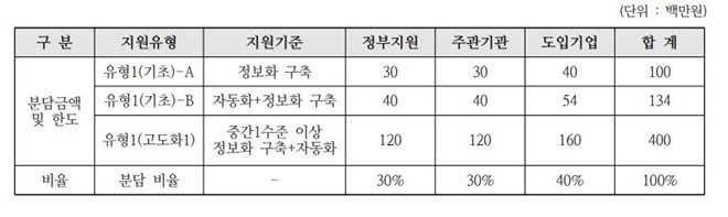 ▲생산 자동화, 공장 솔루션 구축 및 현장진단 ▲원가계산 ▲수준확인 등 스마트공장 구축 비용 및 컨설팅을 지원하며 사업 기간은 협약 후 6개월 이내다.