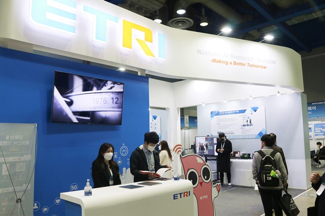 ▲전시회에 참가한 ETRI 부스 전경(출처 : 함수미 기자)