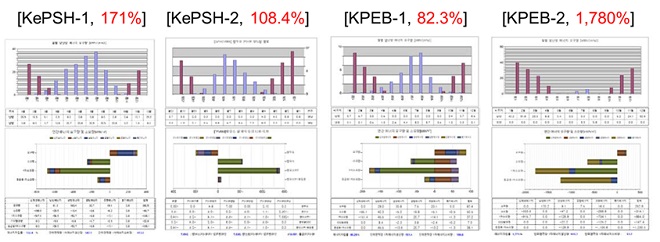 연구진은 1차년도(2020)에 위와 같이 리모델링한 주거용 건물 KePSH-1과 KePSH-2를 ‘21년 1월부터 4월까지 시운전해 일반적인 가구의 소비량 기준으로 144%의 에너지자립률을 실증했다. 이를 건축물 에너지효율등급 인증평가 프로그램(ECO2)을 이용해 시뮬레이션했을 때 연간 에너지자립률 166.3%를 얻었다.