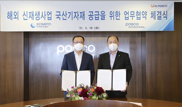포스코인터내셔널은 5월 18일 인천 송도 사옥에서 한국중부발전이 추진 중인 해외 신재생 사업에 국산 기자재를 공급하는 내용의 업무협약(MOU)을 체결했다고 밝혔다.