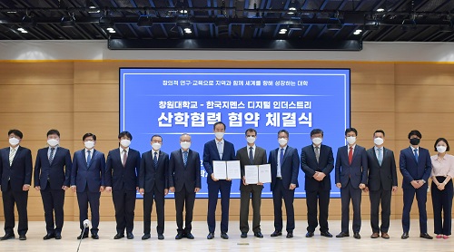 한국지멘스 디지털 인더스트리(DI)와 창원대학교가 4차 산업 전문 인력 양성을 위한 산학 협력 협약을 27일 체결했다.